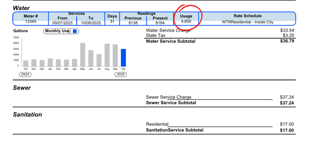 *Avg bill = 5,000 gallons per month
